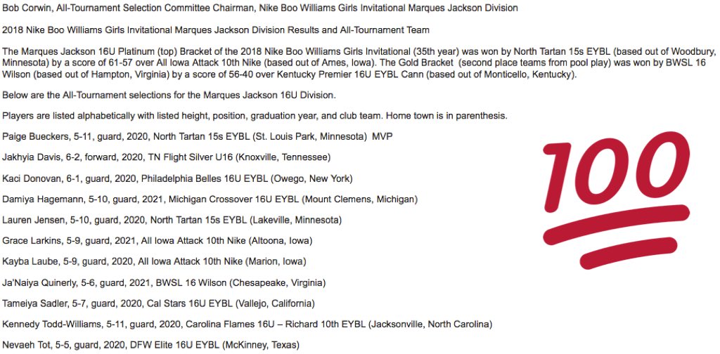 North Tartan NIKE 10 EYBL 2018 Boo Williams Girls Nike Invitational Nike 16U Marques Jackson (Platinum Bracket) Champions